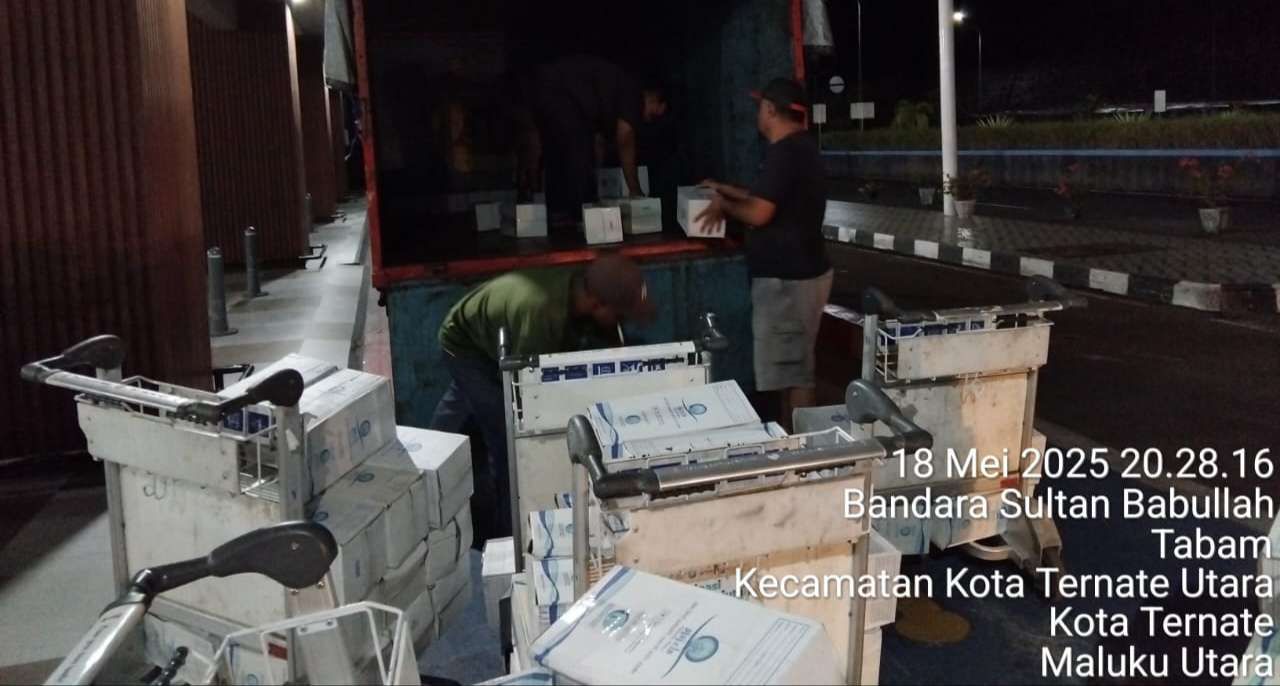 HarianMalut, Ternate – Air Zam-Zam milik para Jemaah Haji Kloter 13, 15 dan 17 asal Provinsi Maluku Utara embarkasi Makassar, tiba di Bandara Sultan Babullah Ternate, Minggu (18/5/2025).