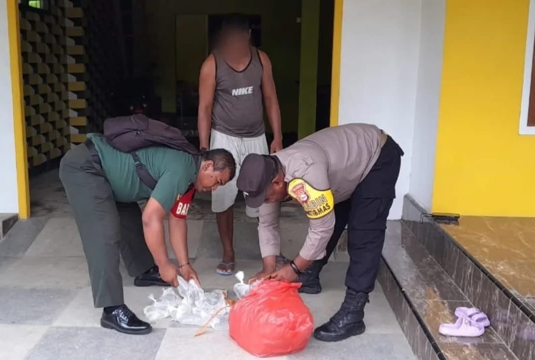 Tidore – Babinsa Koramil 1505-01/Tidore Kodim 1505/Tidore, Serda Irfan Samijan, bersama anggota Polsek Polresta Tidore berhasil menyita puluhan kantong minuman keras (miras) ilegal jenis cap tikus di Desa Maitara Tengah, Kecamatan Tidore Utara, Kota Tidore Kepulauan, Maluku Utara, pada Rabu (02/07/2025).