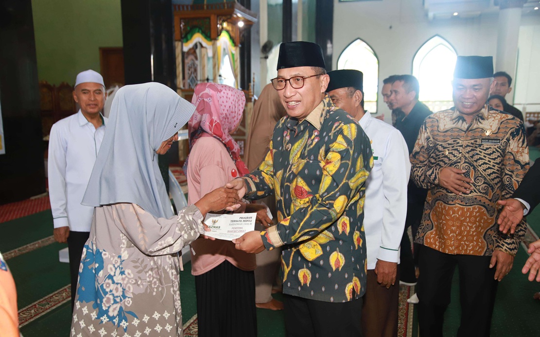 “Kami serahkan kepada fakir miskin dan orang yang berjuang di jalan Allah sebanyak 970 Penerima dengan total Rp. 250.850.000,- dalam bentuk uang serta sembako sebanyak 465 paket kepada satgas kebersihan dan penyapu jalan serta penjaga lingkungan kerja sama dengan Alfamidi dan Indomaret,” ujar H. Adam.