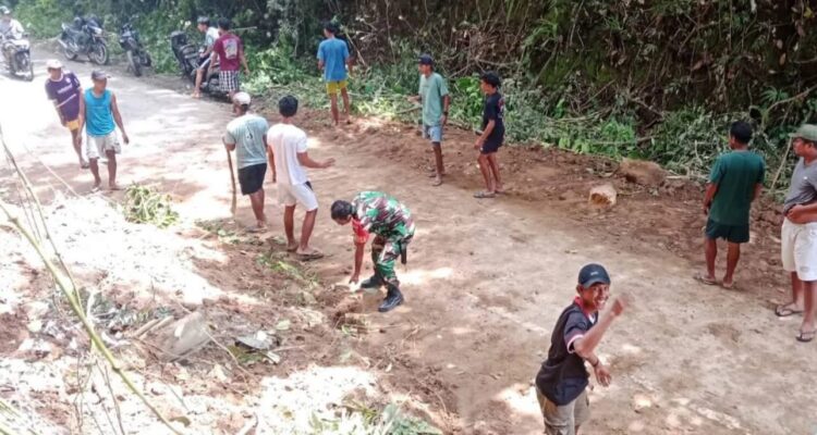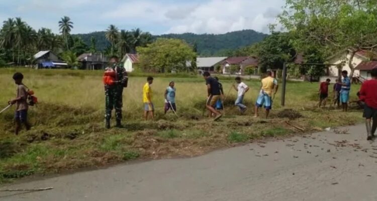 Koramil 1501-03/Jailolo Gotong Royong Membersihkan Badan Jalan