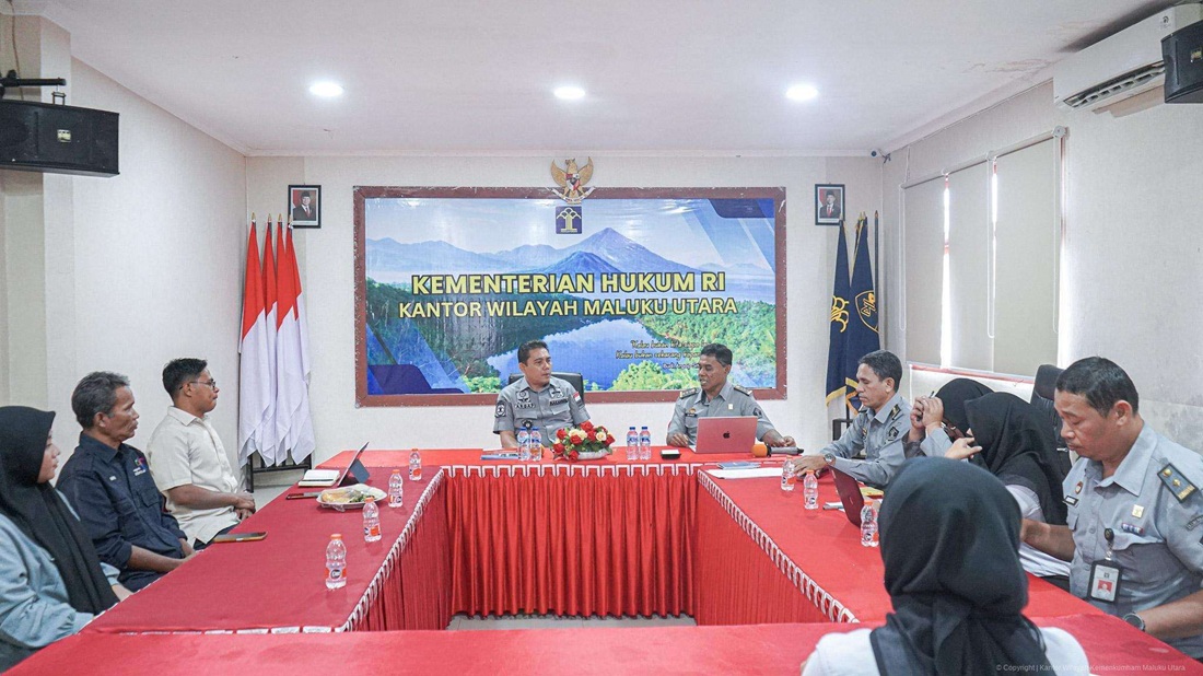 Kepala Bidang Kebudayaan Disparbud Tikep, Irvan Togubu bersama tim dalam lawatannya bertemu dengan Kepala Kantor Wilayah (Kakanwil) Kementerian Hukum (Kemenkum) Maluku Utara, Budi Argap Situngkir di kanwil, untuk komitmen tersebut, Selasa (1/7/2025).