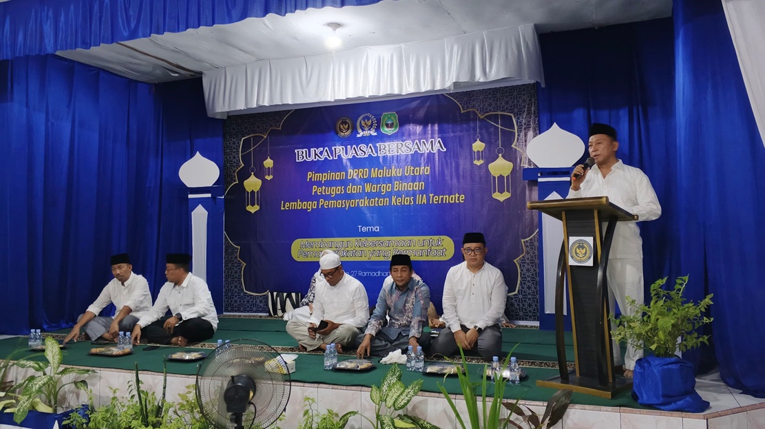 Ternate, HarianMalut – Dewan Perwakilan Rakyat Daerah (DPRD) Provinsi Maluku Utara menggelar buka puasa bersama dengan pegawai dan warga binaan di Lembaga Pemasyarakatan (Lapas) Kelas IIA Ternate, Jumat (28/3/2025).