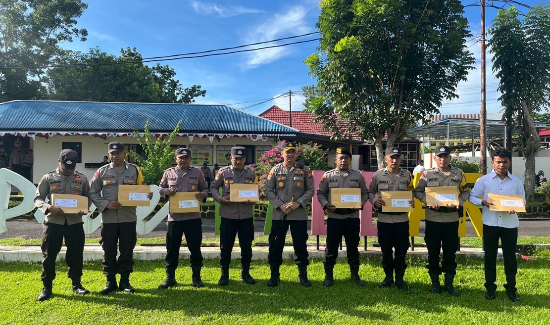 HarianMalut, Jailolo – Enam personel yang bertugas di Kepolisian Sektor (Polsek) Ibu, Polres Halmahera Barat, Kabupaten Halmahera Barat mendapat reward dari Kapolres, AKBP Ercalison Pasaribu.