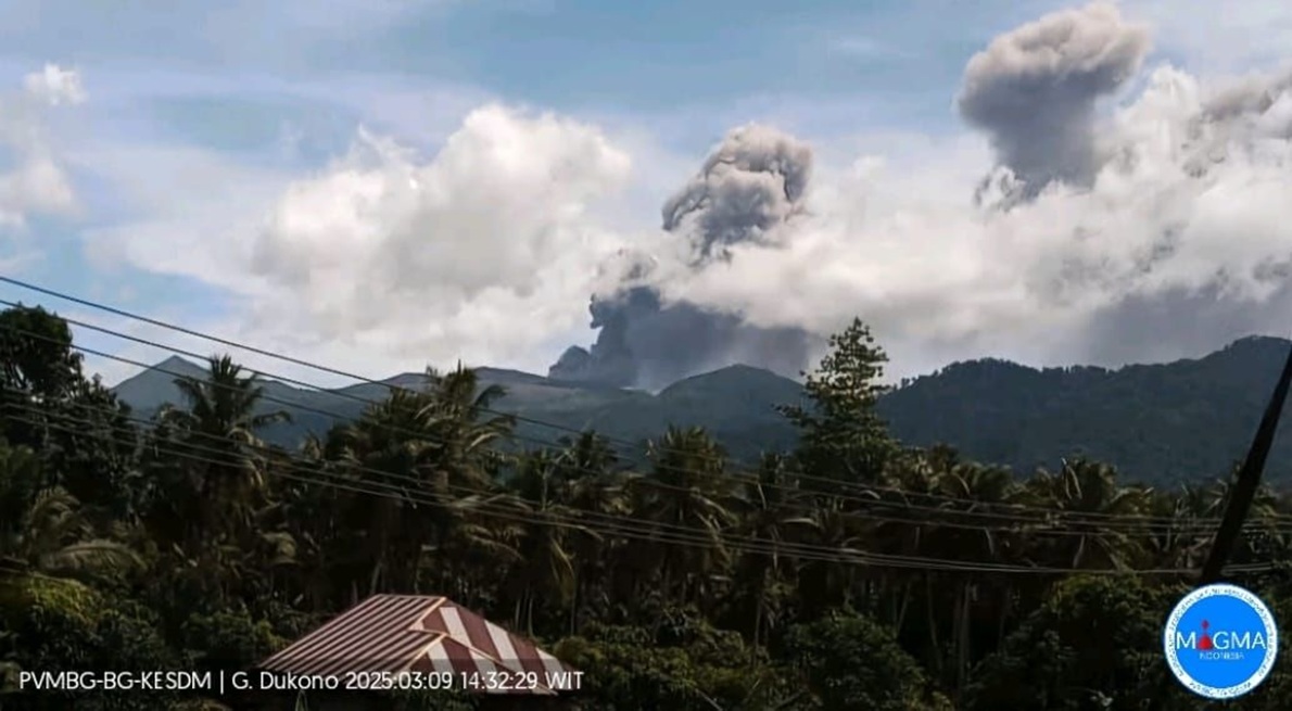 Halmahera Utara, HarianMalut – Pusat Vulkanologi dan Mitigasi Bencana Geologi (PVMBG) Pos Pengamatan Gunung api (PGA) Dukono di Kabupaten Halmahera Utara, Maluku Utara kembali mengalami erupsi pada Minggu 9 Maret 2025 pukul 14:18 WIT.