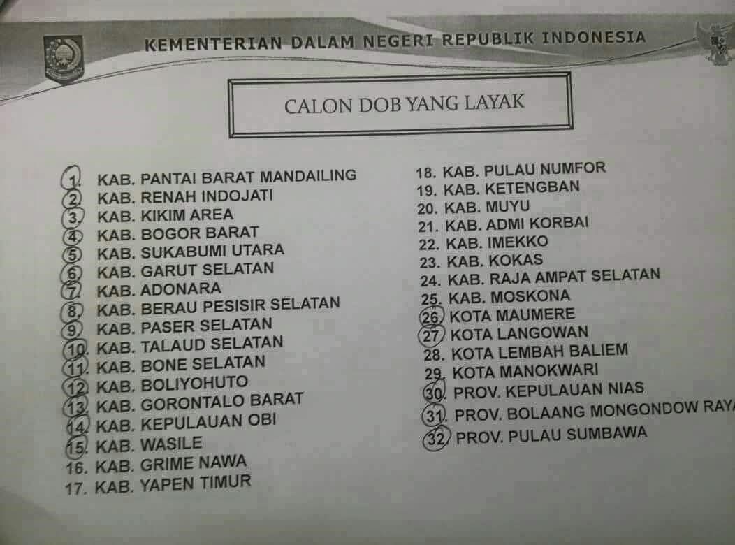 Inilah 32 Daftar Calon DOB Yang Layak Di Mekarkan Menurut Kemendagri