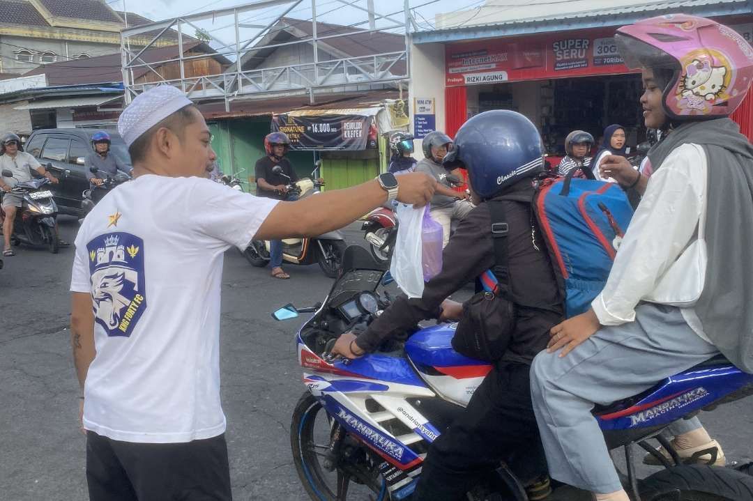 Dalam aksi sosial ini, para suporter klub Malut United FC ini kompak membagikan takjil ke para pengendara, terutama para ojek sebagai menu buka puasa.