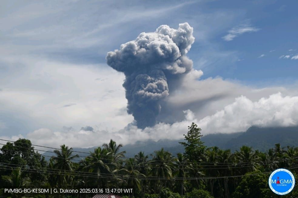 Halmahera Utara, HarianMalut – Gunung api Dukono di Kabupaten Halmahera Utara, Maluku Utara kembali mengalami erupsi pada Minggu 16 Maret 2025 pukul 14.42 WIT.
