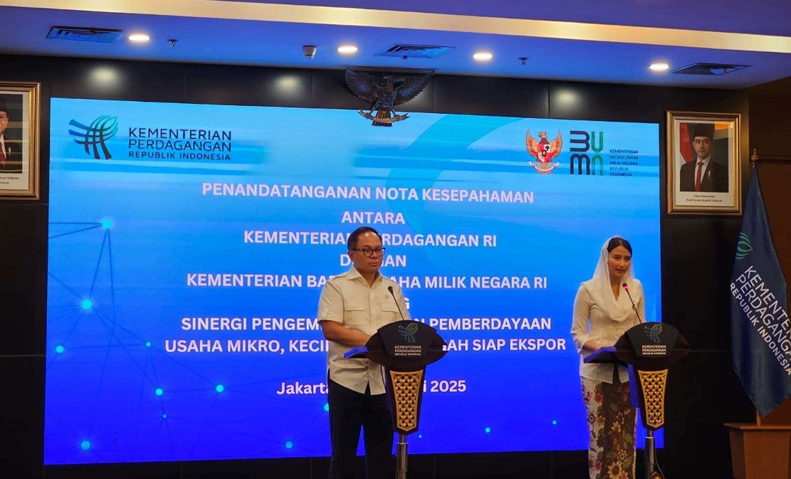 Jakarta, HarianMalut – Kementerian Perdagangan dan Kementerian BUMN  menandatangani Nota Kesepahaman Sinergi Pengembangan dan Pemberdayaan  UMKM Siap Ekspor.  Nota kesepahaman ditandangani Wakil Menteri Perdagangan, Dyah Roro Esti dan Wakil Menteri BUMN,  Kartika Wirjoatmodjo di kantor Kementerian Perdagangan.