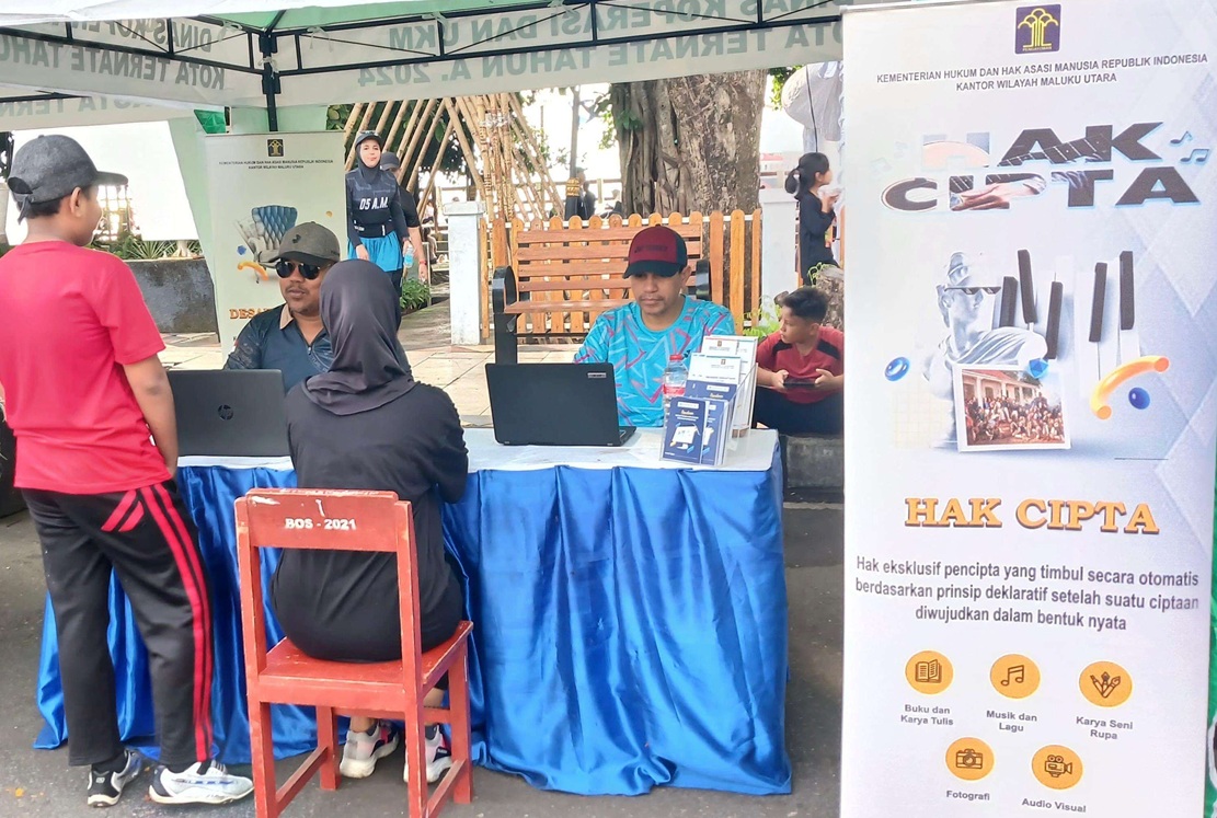 Ternate, HarianMalut – Kantor Wilayah Kementerian Hukum (Kemenkum) Maluku Utara membuka layanan kekayaan intelektual pada Festival Olahraga dan Pameran UMKM yang digelar KONI Kota Ternate berlangsung di Taman Nukila.