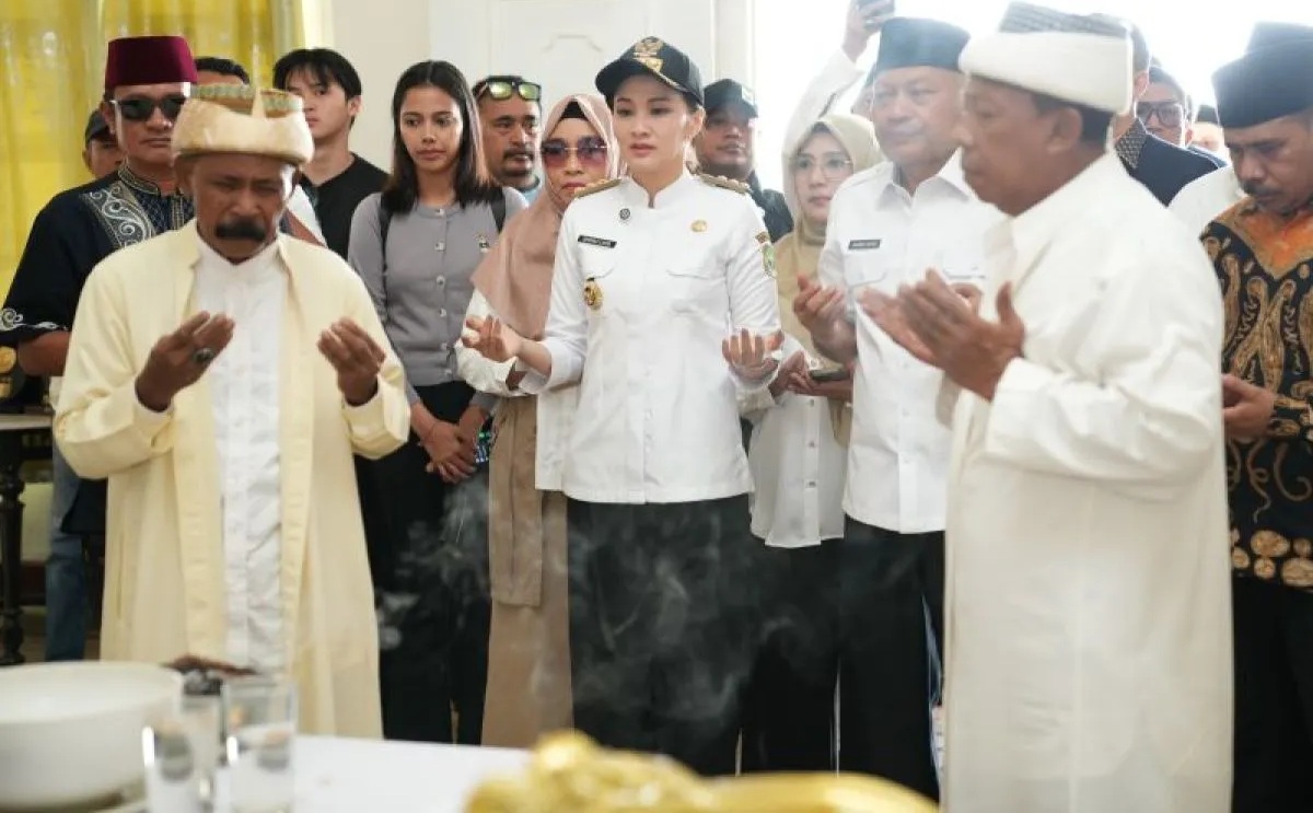 Sherly Tjoanda setelah tiba di Kedaton Ternate, Rabu (5/3/2025), disambut dengan prosesi adat pembacaan doa selamat dan tolak bala oleh Imam Sadaha Masjid Sultan Ternate, didampingi Hatib Bahruddin selaku perangkat adat kesultanan.