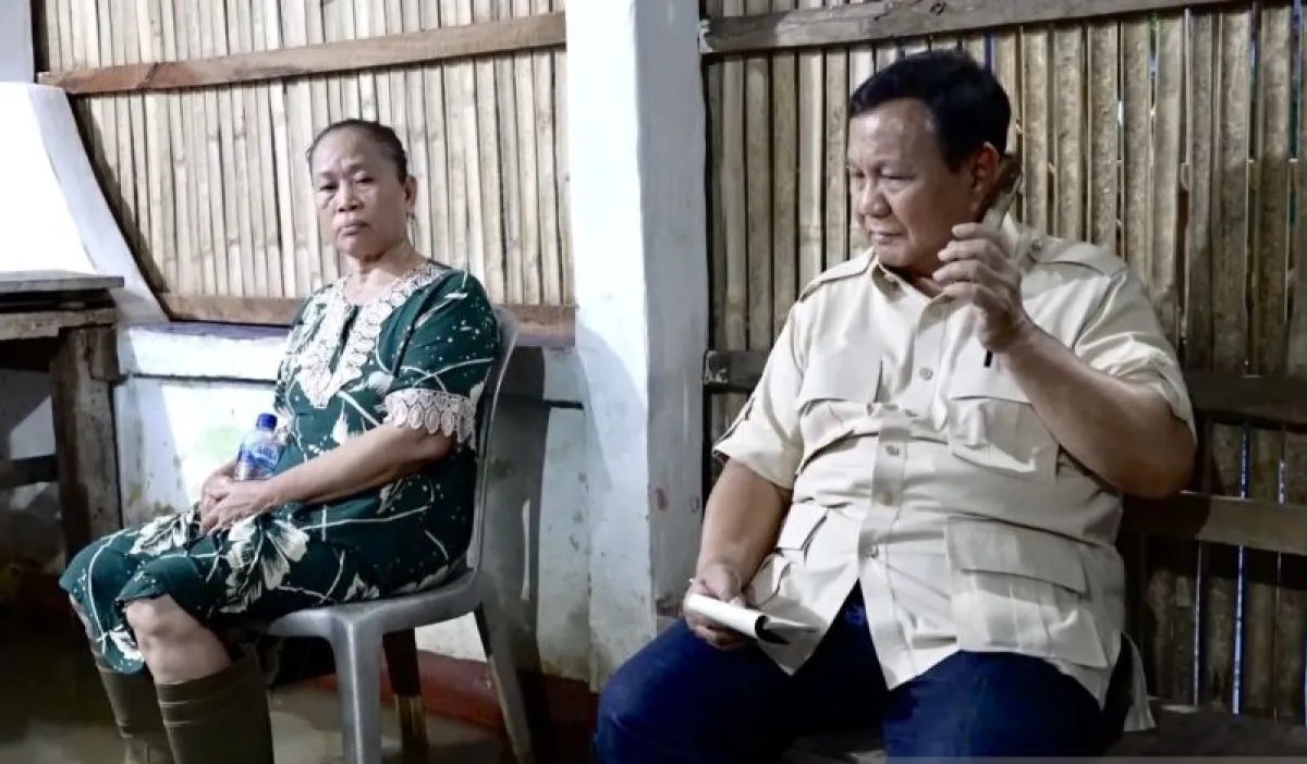 Presiden Prabowo didampingi oleh Sekretaris Kabinet Teddy Indra Wijaya, pun mengecek langsung kondisi korban banjir di Kampung Tambun Inpres, Babelan, Sabtu sore.