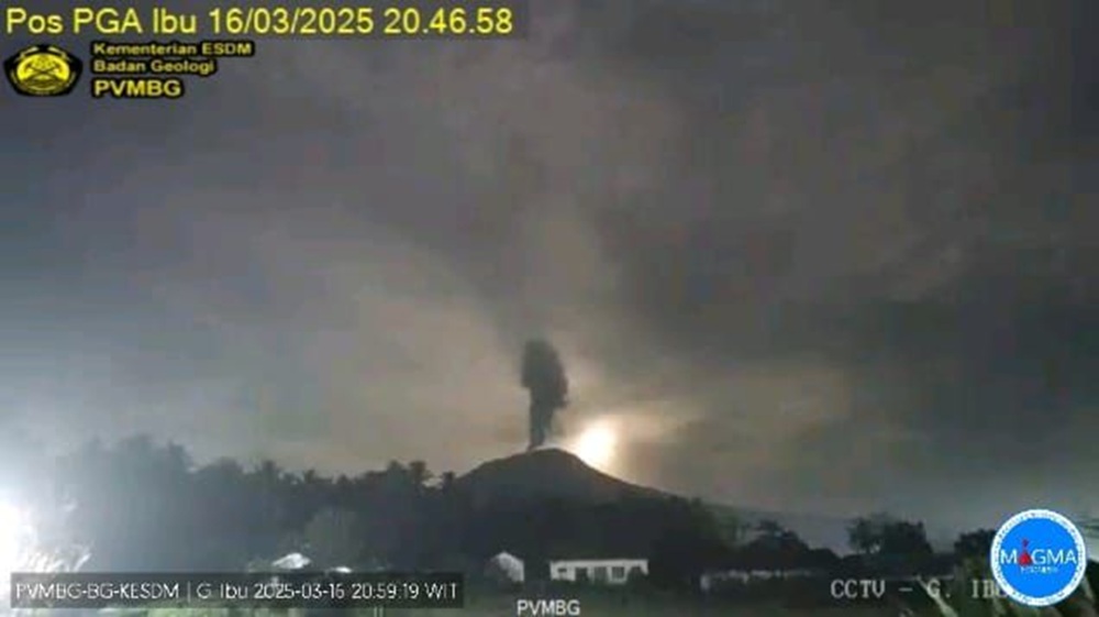 Minggu Malam, Gunung Ibu Lontarkan Abu Setinggi 1.000 Meter