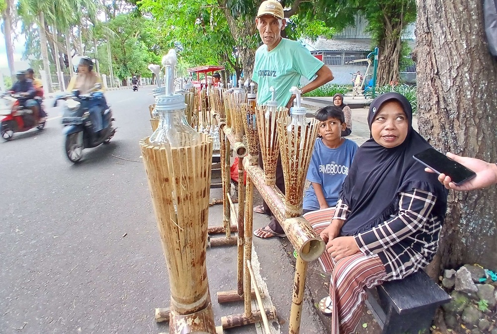 “Ini baru hari pertama berjualan. Tahun lalu, kami bisa mendapatkan omzet hingga Rp5 juta. Untuk obor yang terbuat dari bambu, harganya berkisar Rp50.000 hingga Rp60.000, sementara yang terbuat dari botol dijual seharga Rp20.000,” katanya.
