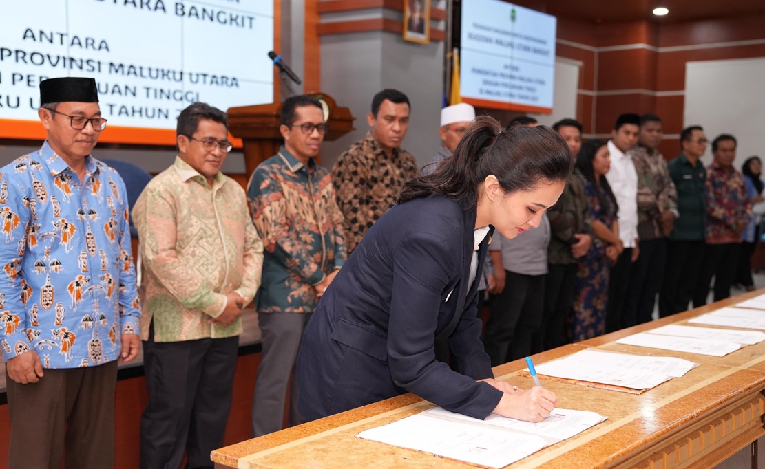 HarianMalut, Ternate – Pemerintah Provinsi Maluku Utara terus memperkuat komitmen meningkatkan akses pendidikan tinggi bagi masyarakat tidak mampu. Pada Jumat (16/5/2025), Gubernur Maluku Utara, Serly Laos, secara resmi menandatangani nota kesepahaman (MoU) dengan 27 perguruan tinggi negeri dan swasta di Maluku Utara terkait penyaluran beasiswa bagi 1.000 mahasiswa melalui program Beasiswa Maluku Utara Bangkit.