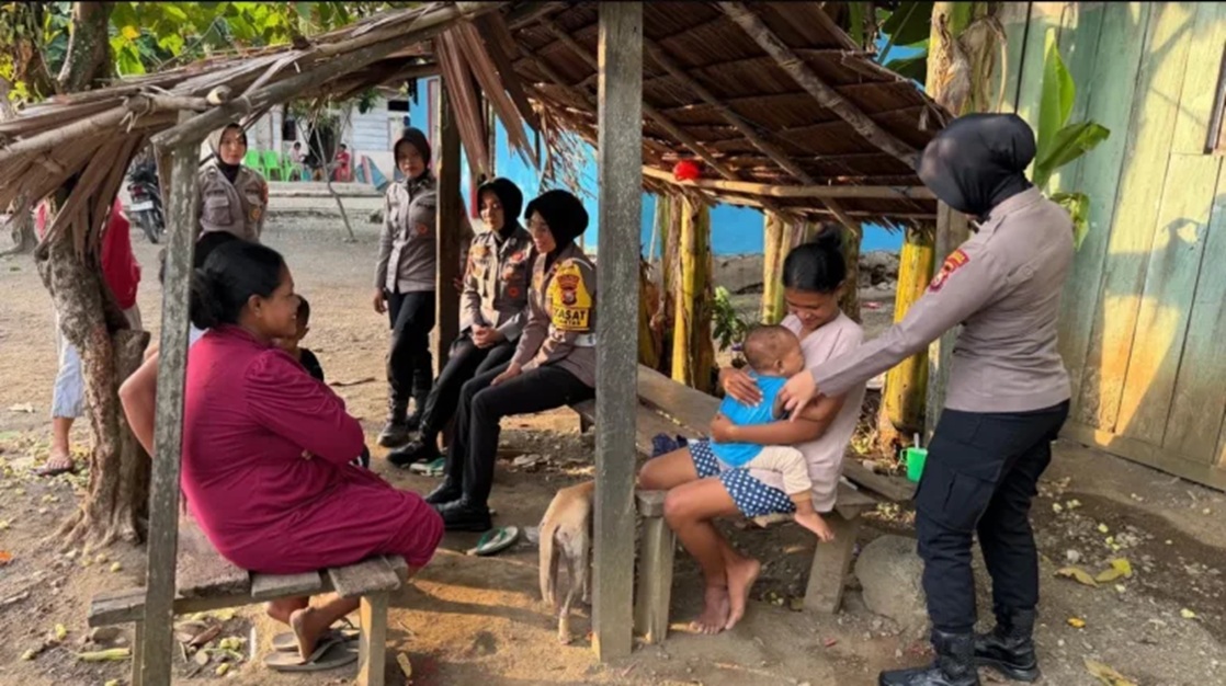 Halteng – Personel Polisi Wanita (Polwan) Polres Halmahera Tengah, Maluku Utara, melaksanakan kegiatan trauma healing secara door to door di Desa Sibenpopo, Sabtu 11 April 2026. Kegiatan ini dilakukan sebagai bentuk kepedulian terhadap warga, khususnya anak-anak dan orang tua yang terdampak situasi sulit pascakonflik.