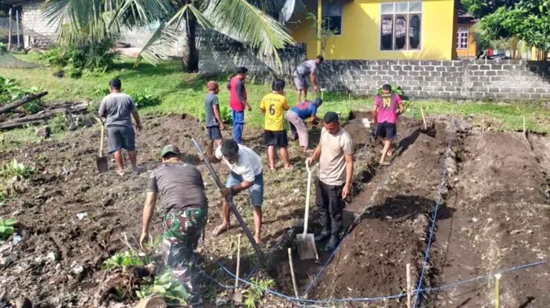 Ternate – Salah satu anggota TNI dari Babinsa Koramil 1501-02/Pulau Hiri,  Sertu Mahmud Ishak, melaksanakan kegiatan bakti bersama masyarakat warga binaan pembuatan Kebun PKK di lingkungan RT 02 RW 01, Kelurahan Takome, Kecamatan Ternate Barat. Kegiatan ini bertujuan untuk meningkatkan kemanunggalan TNI dengan masyarakat, Kamis 26 Maret 2026.