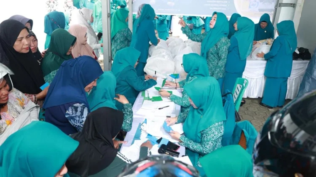 Ternate – Dalam rangka memperingati Hari Kesatuan Gerak (HKG) PKK ke-54, PKK Kota Ternate menggelar pasar murah dengan menyediakan 559 paket sembako bagi keluarga pra sejahtera. Kegiatan berlangsung di halaman Gedung Wanita Ternate pada Rabu, 4 Maret 2026.