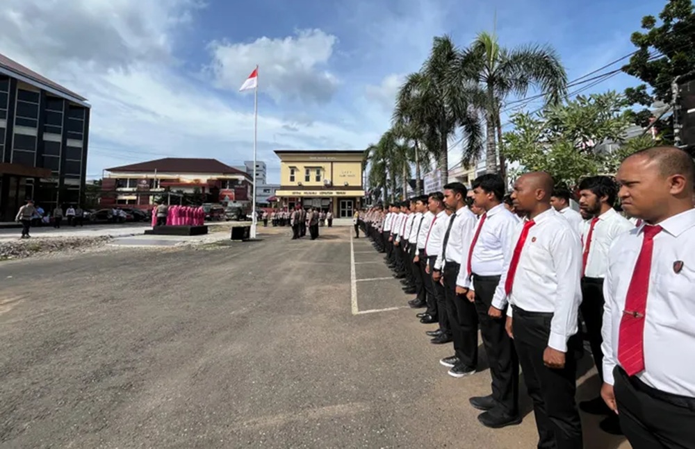Ternate, HarianMalut – Kepolisian Resor (Polres) Ternate menggelar Upacara Serah Terima Jabatan (Sertijab) bagi sejumlah pejabat utama di lingkungan Polres Ternate pada Kamis, 27 Februari 2025, sore. Upacara yang berlangsung di Lapangan Apel Mapolres Ternate, Kelurahan Takoma, Kecamatan Ternate Tengah, ini dipimpin langsung oleh Kapolres Ternate, AKBP Niko Irawan, selaku Inspektur Upacara. (Eris/Salim)