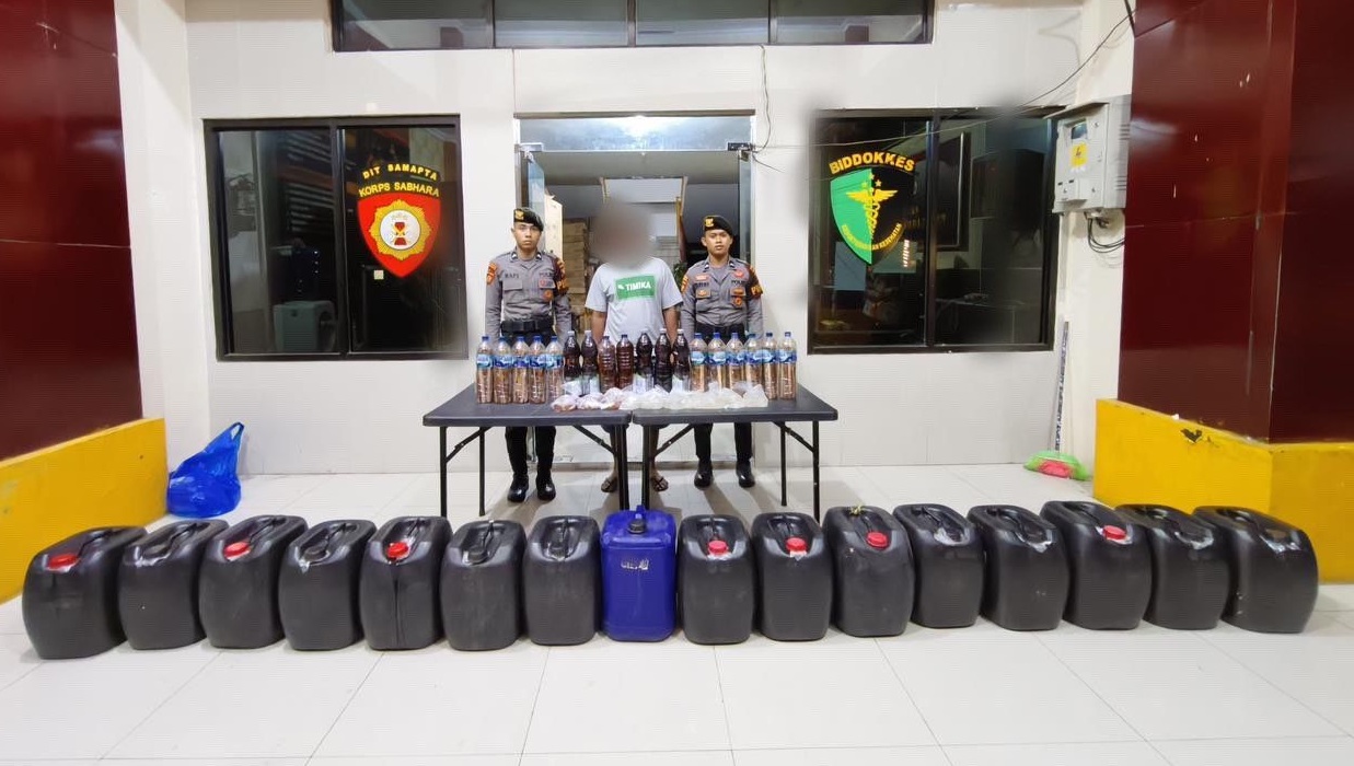 HarianMalut, Ternate – Kepolisian Daerah (Polda) Maluku Utara melalui Direktorat Samapta (Ditsamapta) kembali mengamankan satu terduga pemilik belasan jerigen berisi minuman keras jenis cap tikus.