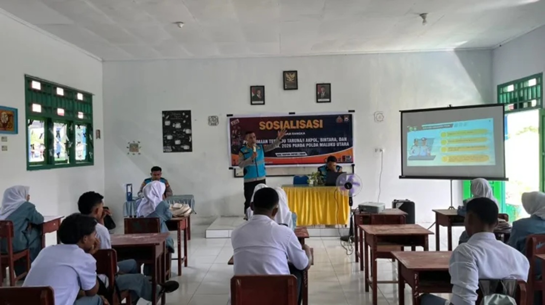 Sofifi – Bertempat di Aula Madrasah Aliyah (MAS) Alkhairaat Guraping, Kepolisian Daerah Maluku Utara (Polda Malut) menggelar sosialisasi penerimaan calon anggota Polri Tahun Anggaran 2026, Senin 2 Maret 2026. Kegiatan ini bertujuan untuk memberikan pemahaman kepada putra-putri terbaik dari lingkungan pendidikan Islam untuk mengabdi kepada bangsa melalui institusi Bhayangkara.