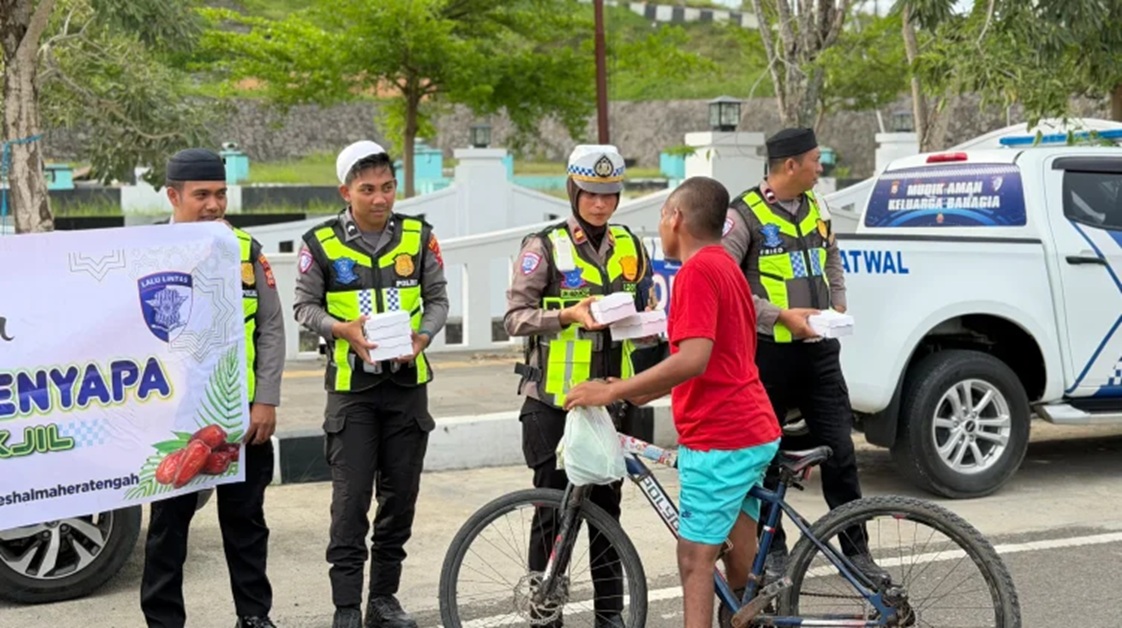 Halteng – Pada Kamis, 12 Maret 2026, jajaran Satuan Lalu Lintas (Satlantas) Polres Halmahera Tengah kembali melaksanakan aksi sosial dengan membagikan takjil kepada masyarakat. Aksi ini menjadi bentuk kebersamaan sekaligus wujud nyata kehadiran Polri di tengah masyarakat.