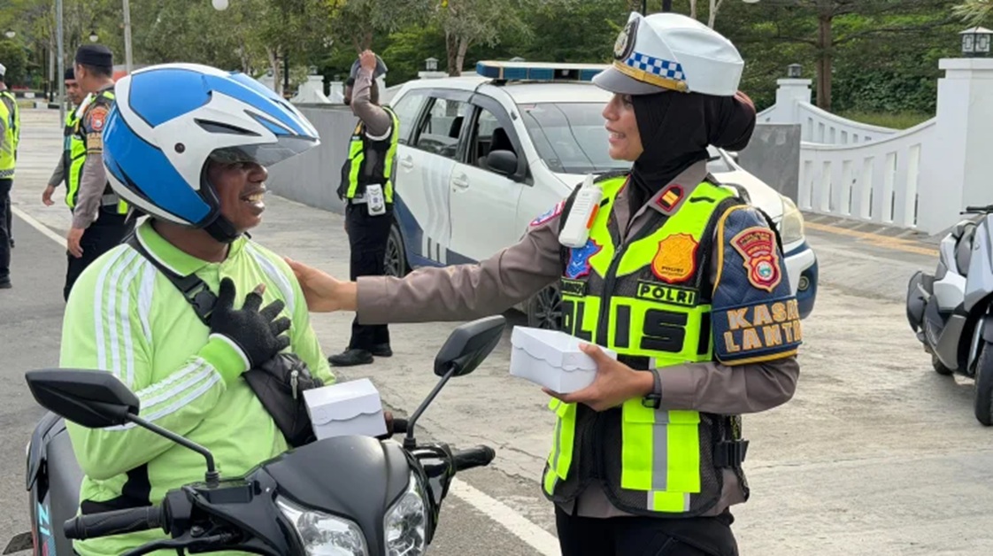 Selain berbagi takjil, para personel juga menyampaikan imbauan kepada para pengguna jalan agar selalu mematuhi aturan lalu lintas serta mengutamakan keselamatan saat berkendara, terutama menjelang waktu berbuka puasa yang biasanya diiringi meningkatnya aktivitas di jalan raya.
