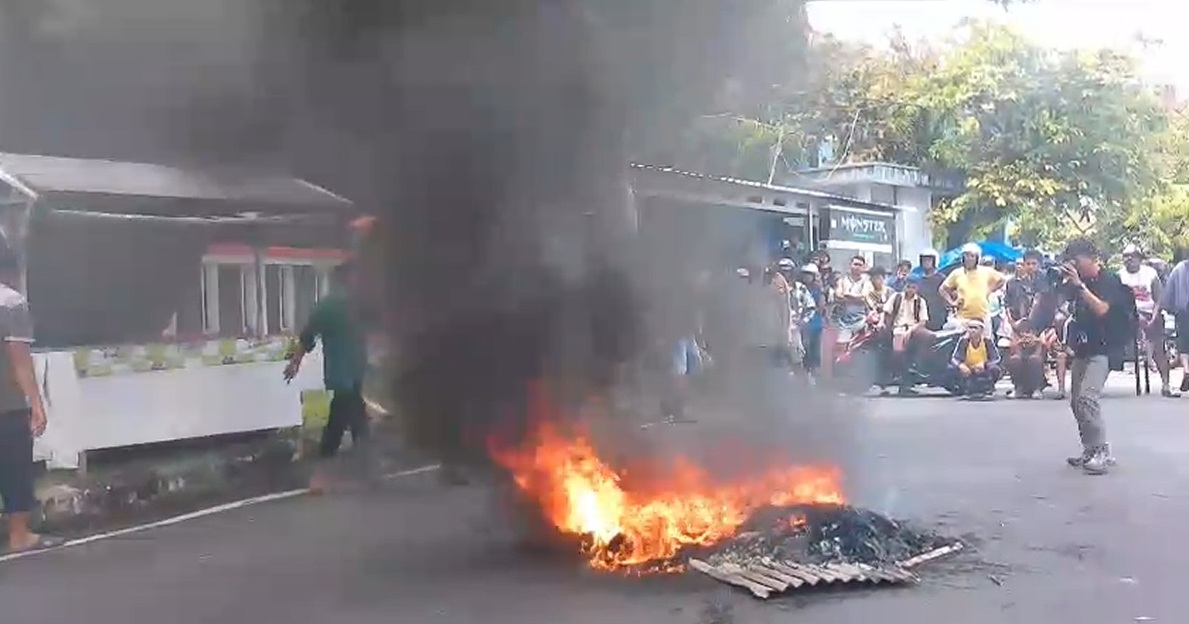 Ternate – Pelaku usaha dan pekerja di kawasan Pasar Dufa-Dufa Kota Ternate, menggelar aksi demonstrasi sekaligus memblokade aktivitas lalu lintas, tepatnya di jalan batu angus depan Kampus Aikom menuju Bandara Sultan Babullah, Kamis, 26 Februari 2026.