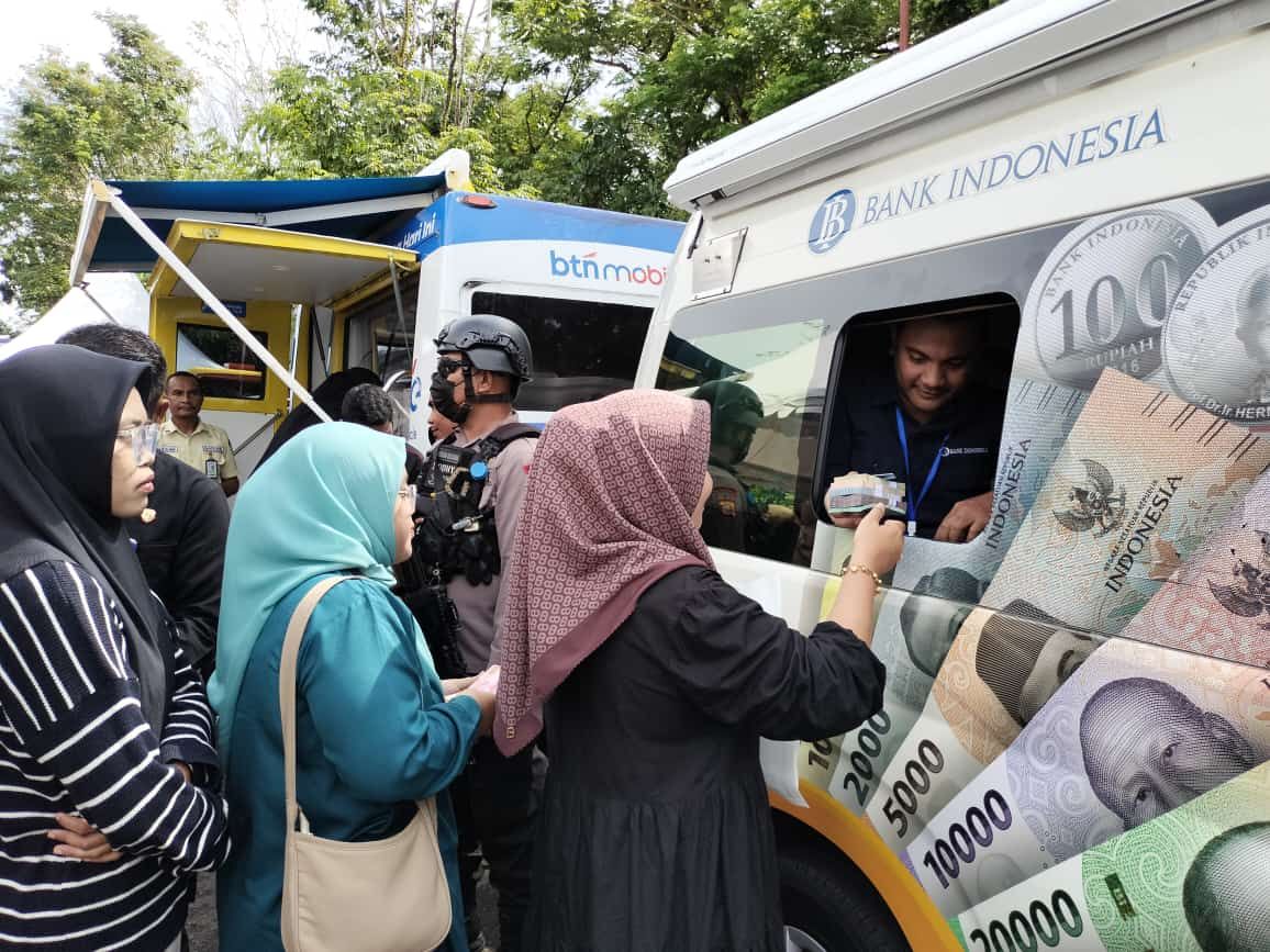 Ternate, HarianMalut – Ratusan warga Kota Ternate antusias melakukan penukaran uang pecahan kecil (UPK) di mobil kas keliling di Taman Nukila, Ternate, Senin (17/3/2025). Di lokasi ini terdapat 4 mobil kas keliling dari perbankan disiapkan melayani masyarakat yang akan menukarkan UPK untuk kebutuhan Ramadan dan Idulfitri 1446 Hijriah.